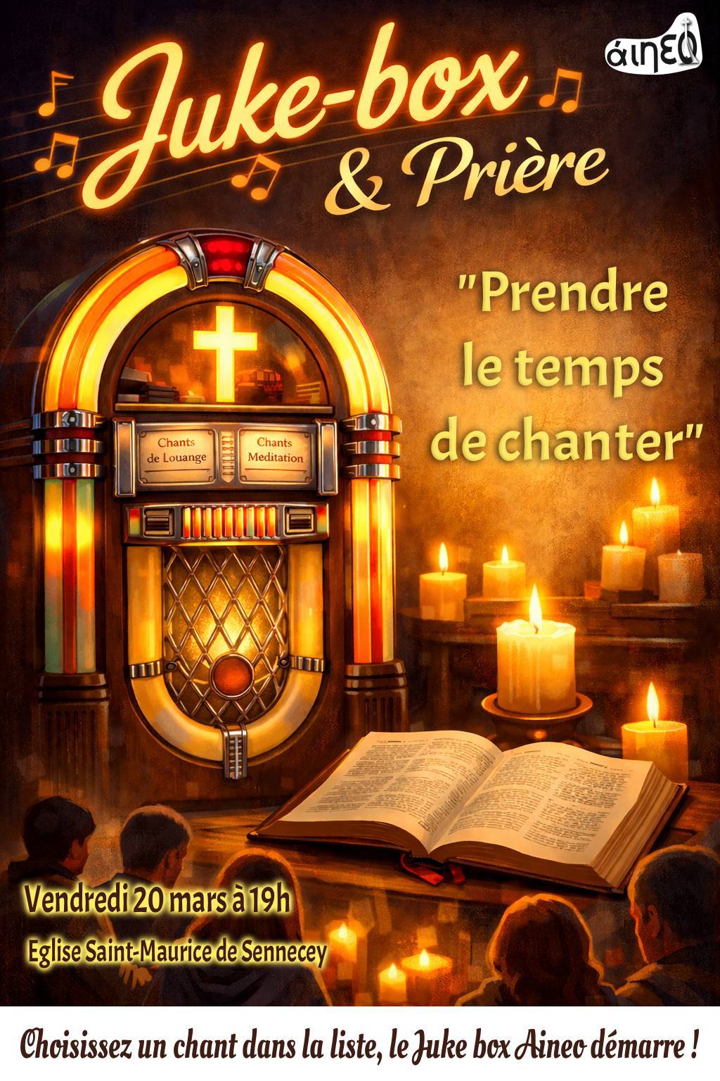Nous vous proposons une soirée “juke-box” : AINEO mettra à disposition un carnet d’une trentaine de chants catholiques et chrétiens, issus d’un répertoire intergénérationnel, pour que chacun puisse choisir le chant qu’il souhaite chanter et partager.